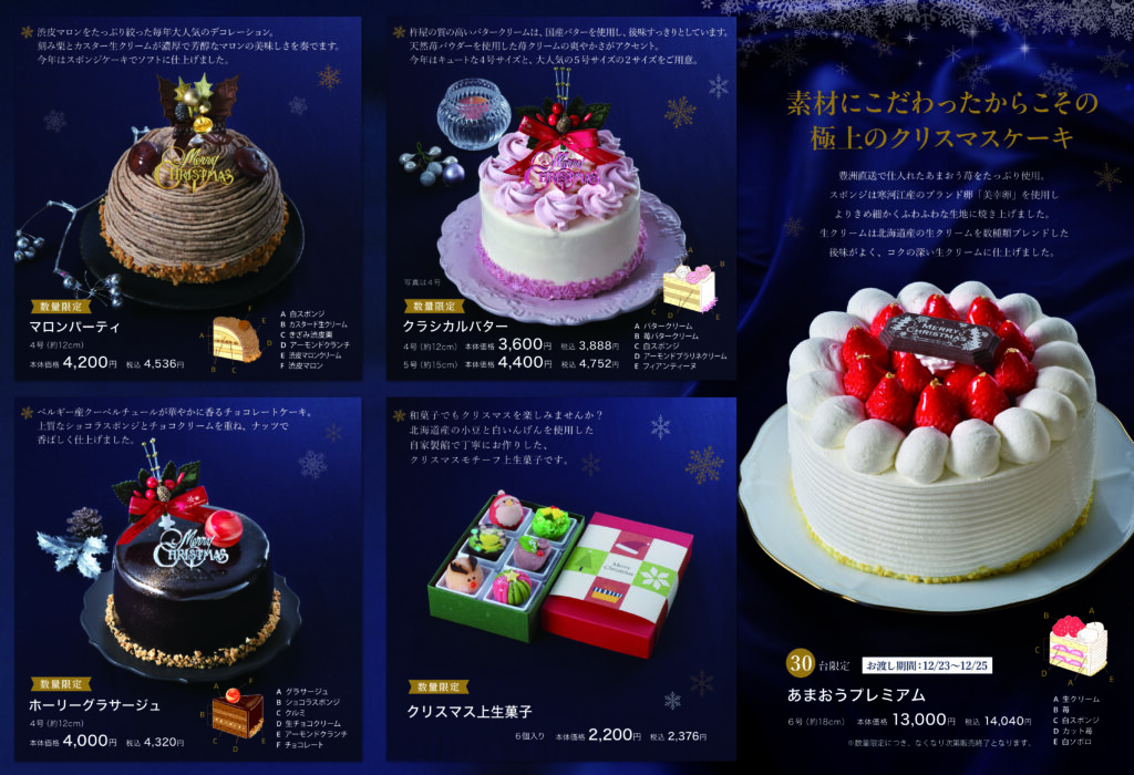 クリスマスケーキ2024ご予約承り中! 2024年11月23日 HP いつも杵屋本店をご利用頂きまして誠にありがとうございます! 2024年もクリスマスケーキの予約を開始致しました! 本年のクリスマスケーキは完全予約制となります!お早目のご予約をお願い致します。 当日販売の小物ケーキの取り扱いもございませんのでご注意下さいませ🙇♀️ 詳しくは下記カタログをご覧下さいませ! クリスマスケーキカタログ2024表 クリスマスケーキカタログ裏