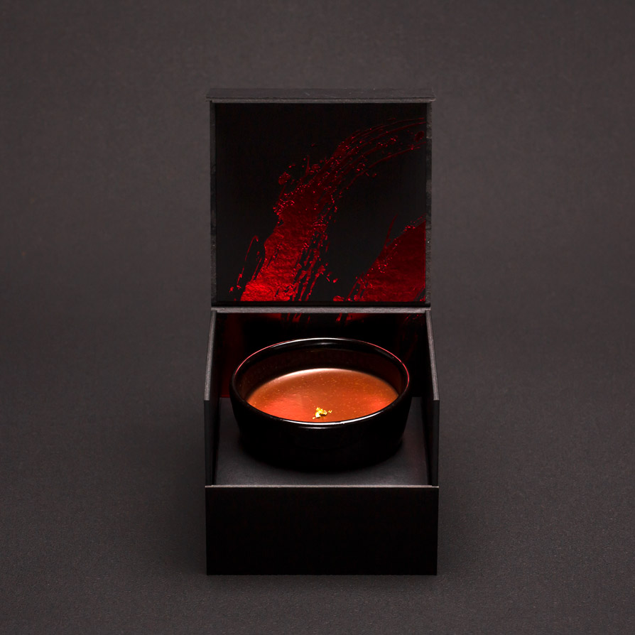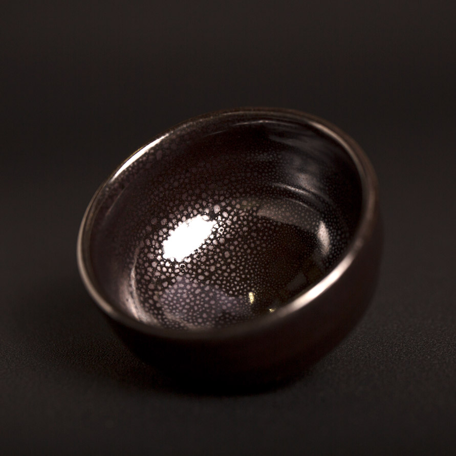 油滴天目がもつ漆黒に銀色の斑紋が無数広がる唯一無二のグラデーションをご堪能ください。