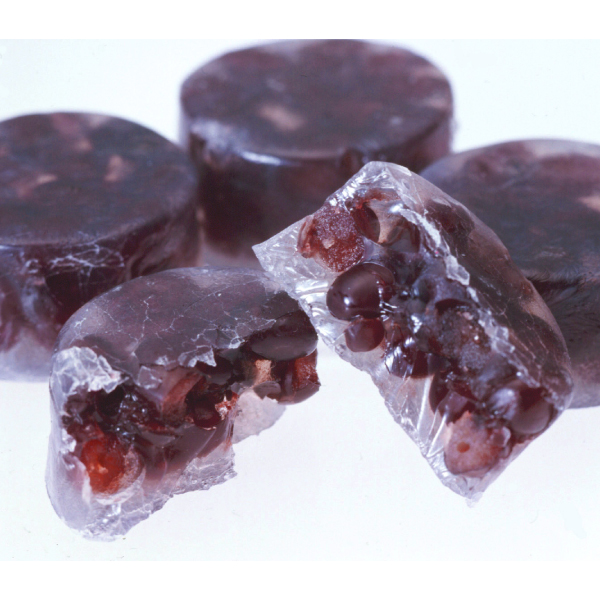 北海道産大納言を鹿の子豆に仕上げ、専用の乾燥室で丸4日間乾燥して琥珀糖に。